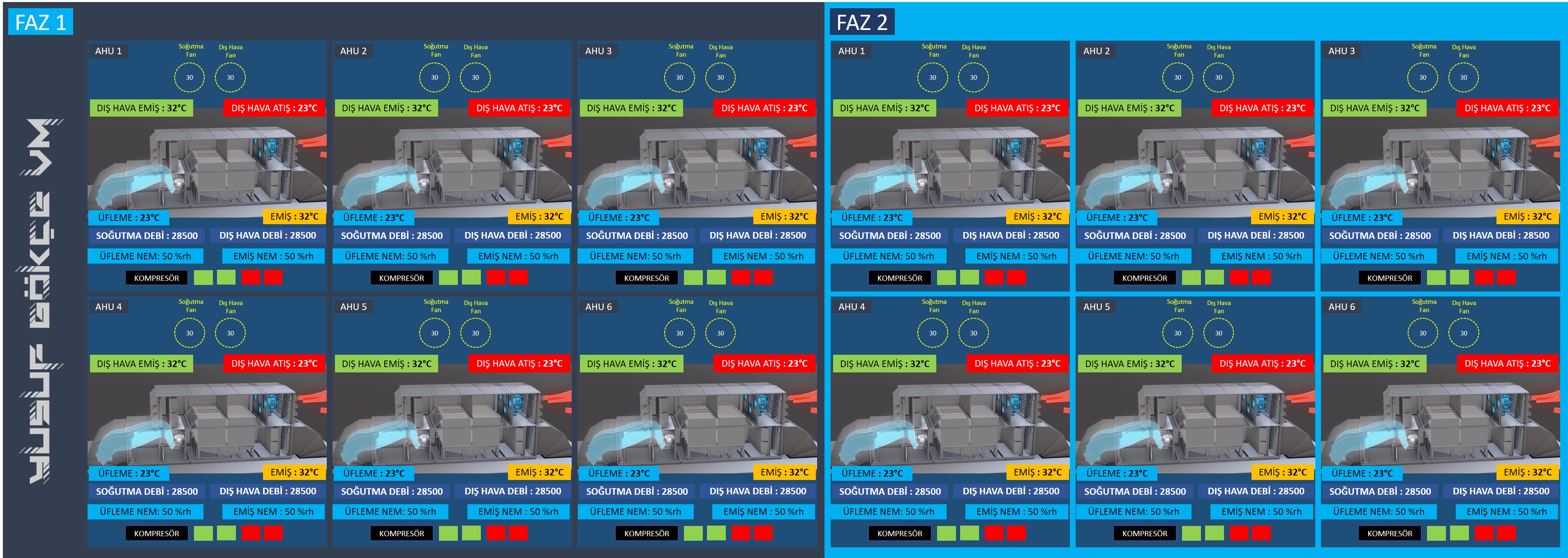 Sıcak hava öz kütleden dolayı yükseleceği için klimalar bu havayı çekebilecek konumda olmalıdır. Soğuk hava ise yükseltilmiş zeminin altından kabin önlerindeki menfezlerden cihazlara ulaşmalıdır. Devamlılığın öneminden dolayı klimaların yedekliliği de son derece önemlidir. Klimalar sık arızalanan bir yapıya sahiptir bu yüzden yedeklilik son derece önemlidir.