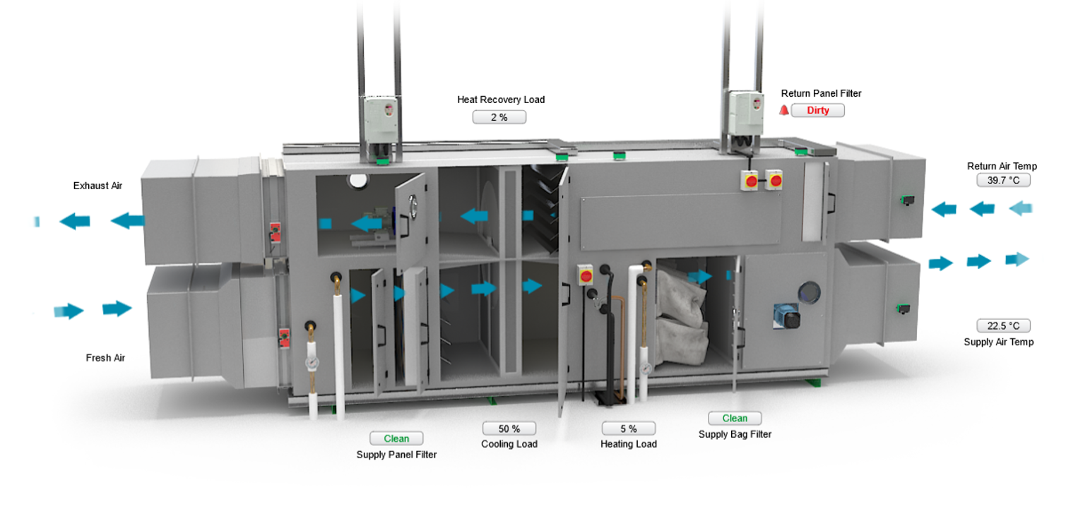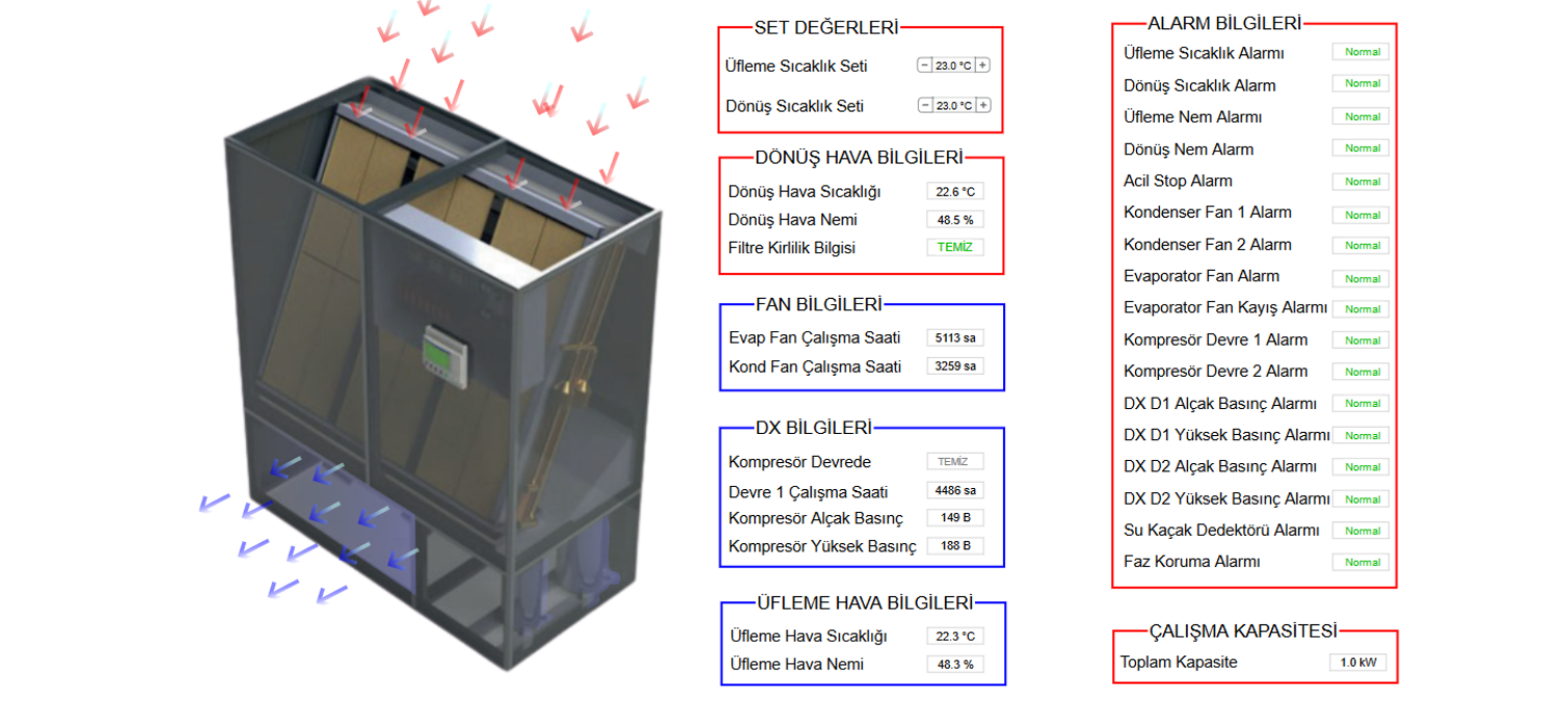 içerisinde bulunan fanlar sayesinde ünitenin içerisine alınır. Ünitenin içerisine alınan hava filtreden geçirilerek toz ve parçacıklardan temizlenir.